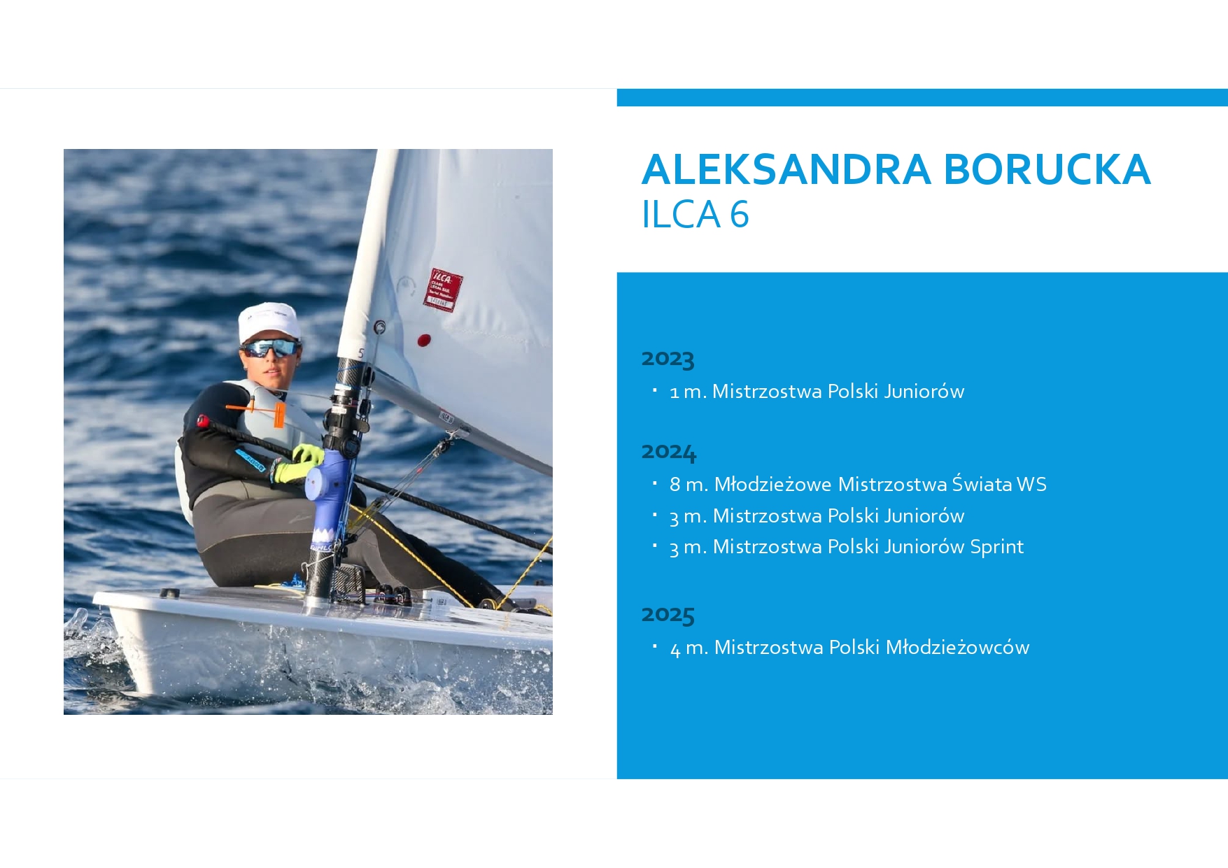 ILCA - International Laser Class Association Klasa laser w wersji regatowej występuje w trzech wielkościach żagla; ILCA 4, ILCA6, ILCA 7. Klasa ILCA 6 jest olimpijską klasą kobiet. Klasa ILCA 7 to olimpijska klasa dla mężczyzn.Zawodnicy Sekcji Żeglarskiej AZS Poznań osiągają znakomite wyniki na regatach. Startują na zawodach zarówno w Polsce jak i na świecie: